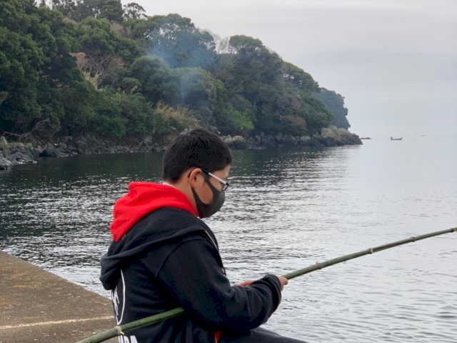 切った竹で釣竿を作って「魚釣り」
