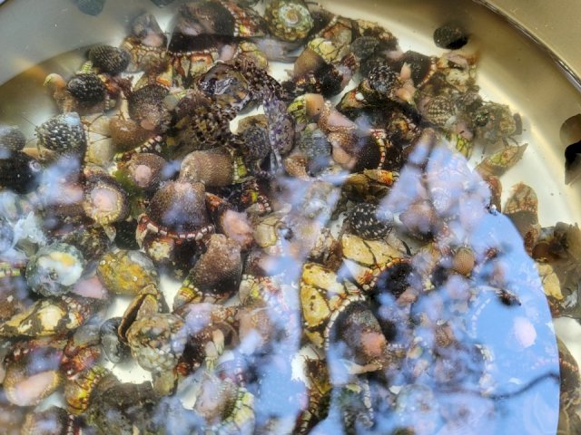 カメノテやシッタカ(ミナ)、マツバガイ、アオサを取って「磯味噌汁」