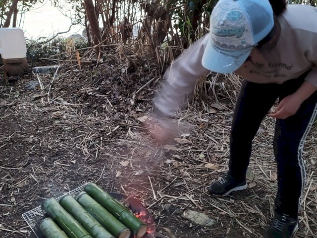 竹を切って「竹ご飯」